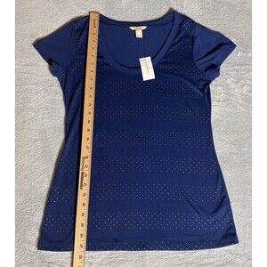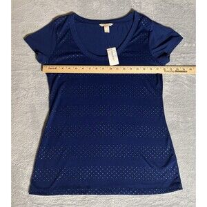 Banana Republic Womens Size Medium Metallic-Dot Tee In Navy Blue MSRP $45