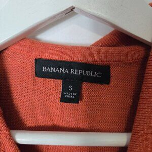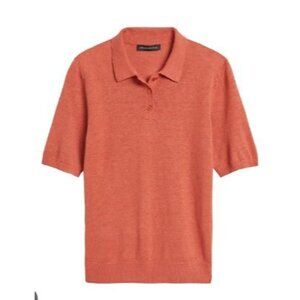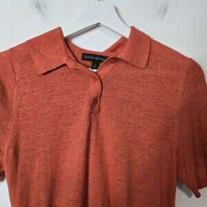 Banana Republic Women's Size S Linen-Blend Short Sleeve Polo Sweater Orange