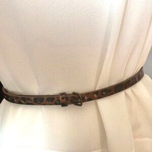 Banana Republic Womens Skinny Leopard Print Belt Small Patent Leather Brown
