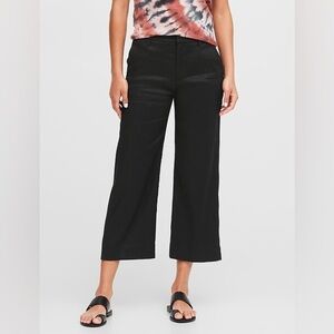 Banana Republic Women’s Slim Wide-Leg Linen Cotton Cropped Pants 8 Black