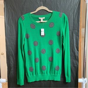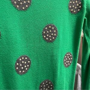 Stylish green sweater featuring bold black polka dots. Perfect for a chic look. NWT. Approximate measurements below: