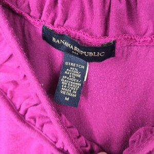 Elegantly crafted and thoughtfully designed, this Banana Republic sleeveless top is an ideal addition to any wardrobe. The top's rayon and spandex blend provides a comfortable stretch, ensuring both fit and style. Its rich purple hue offers a vibrant touch, while the delicate gathered neckline adds a graceful detail.