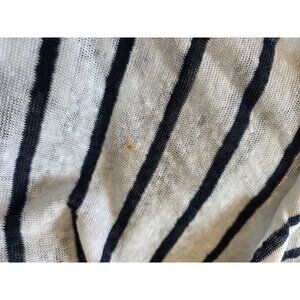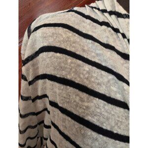 This Banana Republic cardigan is crafted from 100% linen, offering a lightweight and breathable wear. Its black and white striped design adds a classic touch suitable for casual outings or layering. With its open front and long sleeves, this cardigan provides comfort and style in one piece.