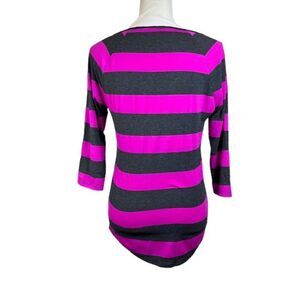 Banana Republic Women's Striped Top Shoulder Button Detail Neon Pink Charcoal M. Excellent condition. See photos for details and measurements. Shop my closet to combine other items for one shipping charge!