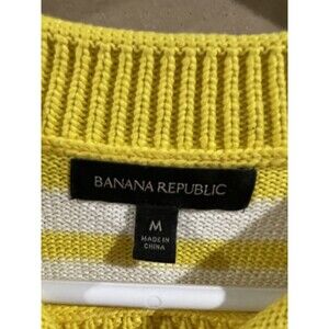 Banana Republic Womens Sweater Cable Knit Striped Pullover Long Sleeve Yellow M