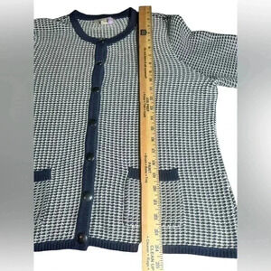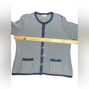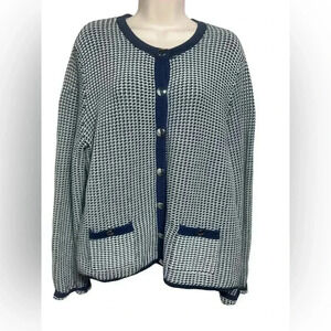 Banana Republic Women's Sweater Cardigan Large XL Blue White Knit 100% Cotton
