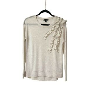 Banana Republic Women’s Sweater Lightweight Ruffle Trim Long Sleeve Cream Size M