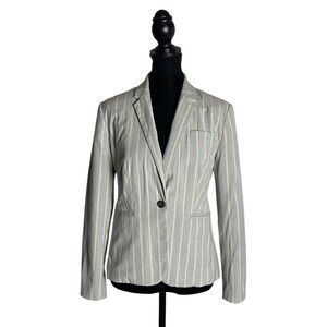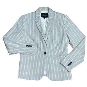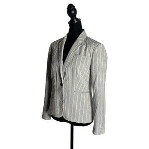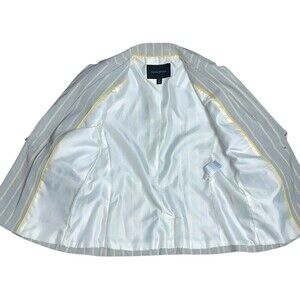 Banana Republic Women's Sz 2P Linen Blend Gray Yellow Striped Stretch Blazer
