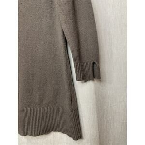 Measures 16.5” P2P and 26” long. The Banana Republic Brown V-neck Wool & Cotton Blend Sweater is a stylish and versatile addition to any woman's wardrobe. Made from a blend of wool, cotton, and nylon, this pullover sweater features a flattering V-neck and 3/4 sleeves, perfect for the winter, fall, or spring seasons. In a classic brown color, this sweater is both comfortable and chic, making it a great option for everyday wear or special occasions. The quality and craftsmanship of Banana Republic ensure that this sweater is a timeless piece that will last for years to come.