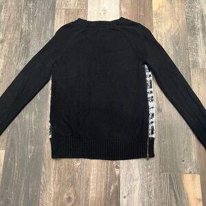 Black White Plaid Front Crew Neck Sweater with a Side Zipper