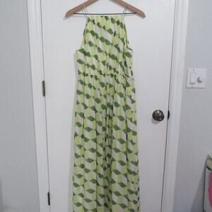 Banana Republic Womens Sz S Yellow Green Geo Voile Maxi Dress Halter Breezy