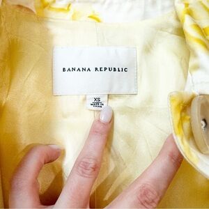 Banana Republic Women's Trench Coat Floral Yellow Button Down Flowers XS