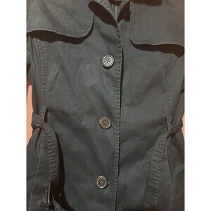 Banana Republic Womens Trench Coat PL Petite Large Black Button Up Jacket