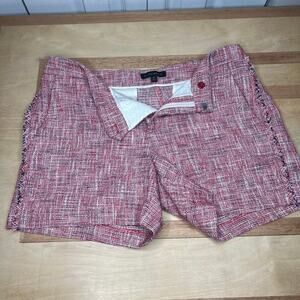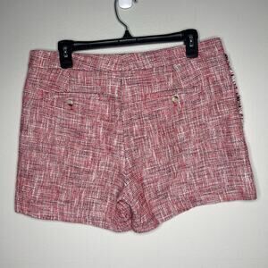 Banana Republic Women's Tweed Frayed Trim High-Rise Shorts Pink Red Sz 8 Preppy