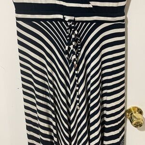 Banana Republic Women’s V-Neck Maxi Long Dress Navy Striped Short Sleeve Size Small Like New In Excellent Condition