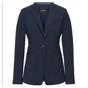 Banana Republic Women’s Wool Blend Navy Long and Lean Single Button Closure Blazer