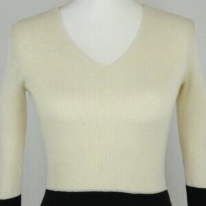 Banana Republic Women's XS Cream Black Wool & Cashmere Blend V-Neck Sweater