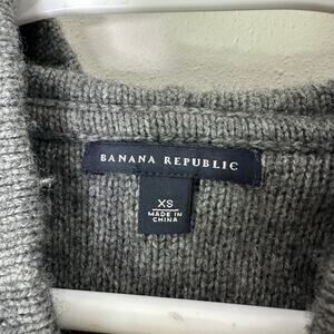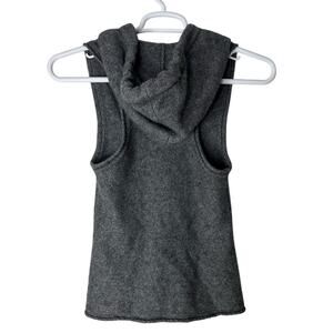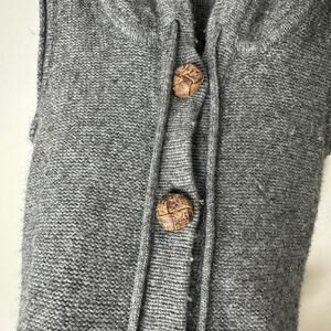 Banana Republic Womens XS Lambs Wool Sweater Vest Leather Buttons Hood Gray Knit