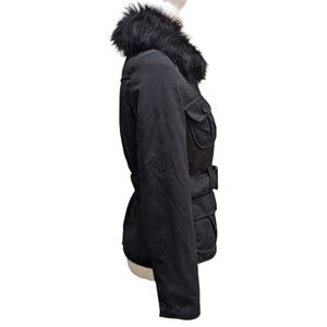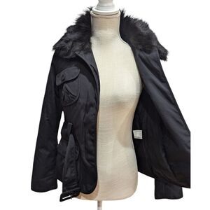 Banana Republic Women's XS Winter Jacket Faux Fur Collar Belted in Black NWT
