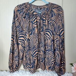 Banana Republic Women's Zebra Boxy Button Down Balloon Sleeve Top - Small