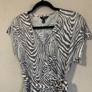 Banana Republic Women’s Zebra Print Linen Wrap Top Sz XS Tie Waist Safari Chic