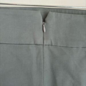 Pockets and back slit are still sewn up. Great skirt in neutral color that will pair with so many things. Comfortable and stretchy!