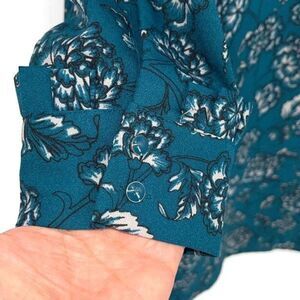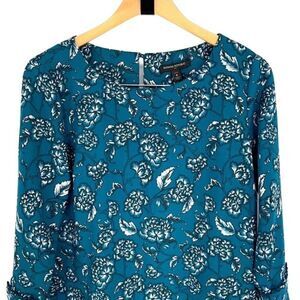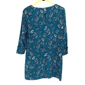 Banana Republic Womens Floral Buttoned Long Sleeve Mini Shift Dress Teal Green S