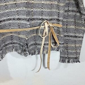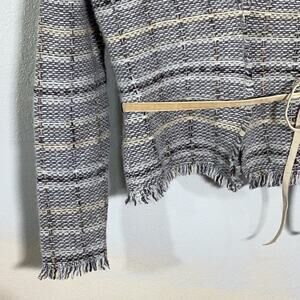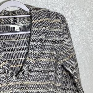 Banana Republic Black Cream Gray Wool And Angora Raw Hem V-Neck Velvet Ribbon Hidden Hook Close Cardigan Sweater Blazer Woman Small Overall Great Condition See All Photos Approximate Chest Measurement Length Measures Approximately 19.5 Inches