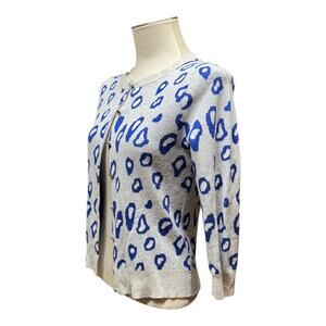 Banana Republic Wool Blend Cardigan Sweater Gray Blue Leopard Cheetah Small