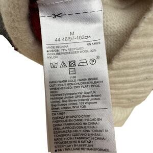 Banana Republic men’s crewneck sweater made from soft Italian yarn. Features a timeless gray, ivory, and red horizontal stripe pattern that adds a refined yet casual look. Medium-weight knit perfect for layering during cooler months.