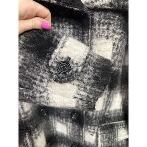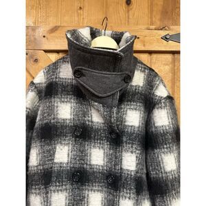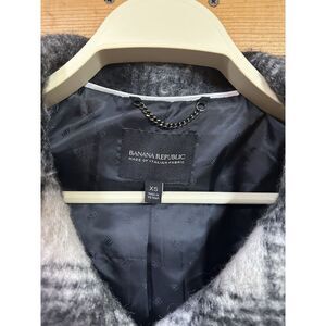 Banana Republic Wool Blend Double Breasted B/W Buffalo Plaid Long Coat Womens XS