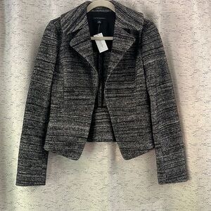 Banana Republic Wool Blend Fitted Blazer Jacket. Wide lapel blazer a slender look. 40% wool and 60% cotton make up the fabric blend. Featuring a Hook closure in the front. Super flattering!