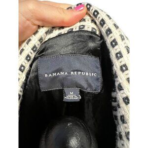 Banana Republic Wool Blend Long Coat Women M Black/White Checkered Button Closur
