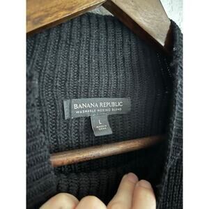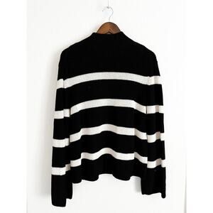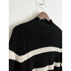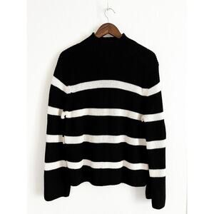 Banana Republic Wool Blend Mock Neck Wide Sleeve Striped Sweater Black White L