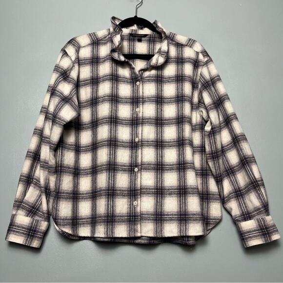 Banana Republic Wool Blend Ruffle Collar Flannel Shirt Gray Plaid