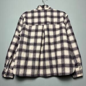 Banana Republic Wool Blend Ruffle Collar Flannel Shirt Gray Plaid Women’s Size L