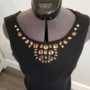 Stylish Banana Republic sleeveless shift dress with jeweled bodice in Black with gold-tone accents — perfect for weddings, date nights, or work events.