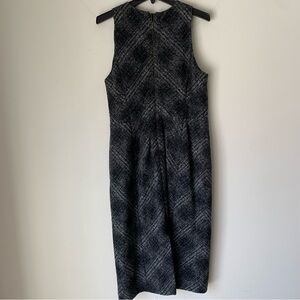Banana Republic Wool Blend Textured Black Gray Plaid Lined Sheath Sleeveless Dress