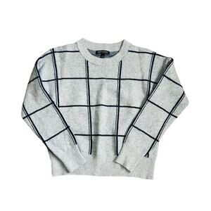 Banana Republic Wool Cashmere Sweater Crewneck Gray Navy Checked Plaid Medium