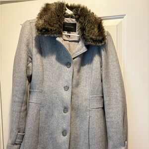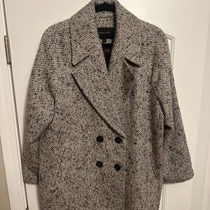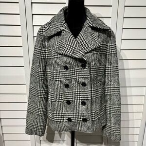 Banana Republic Wool Coat. Cotton Wool blend, brown herringbone tweed style with pockets & silky mocha lining. Classic pea coat style, great preowned condition.