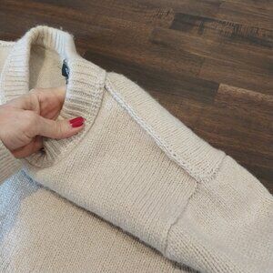 Banana Republic Wool Cotton Sweater M Beige Crewneck Sweater stitches inside-out