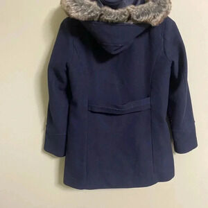 Banana Republic Wool Jacket Pea Coat Mario Bellucci Size XXS Petite Navy Fur Zip
