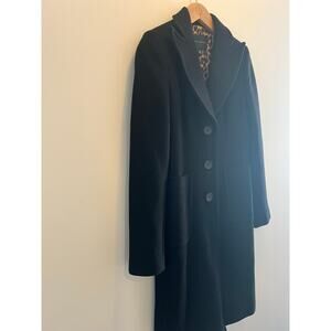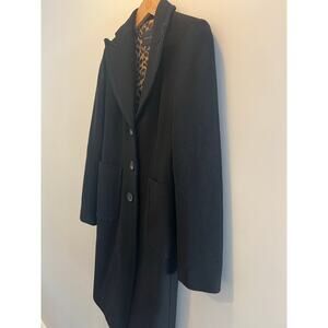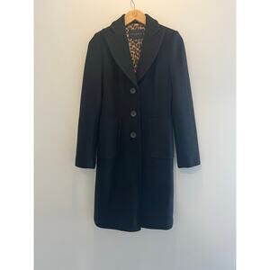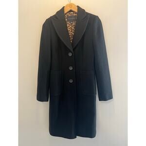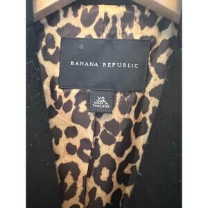 Banana Republic Wool Trench Coat Black Cheetah Lining Size XS