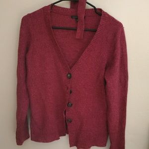Magenta colored button up cardigan with same material waist strap. One of the strap loops is broken but a quick and easy fix. Cozy and beautiful. No stains, smoke free home.