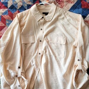 Part of Banana Republic's Workwear line, these shirts have rolled cropped sleeves, button down, & designed for a clean, sophisticated look. Single pleat in the back, roll & button sleeve, & sheer for light fall wear.