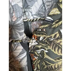 This stunning Banana Republic wrap dress features a tropical jungle print with hidden tigers, making it a unique and eye-catching piece. The rayon fabric drapes beautifully, and the hem has stylish asymmetrical points for added flair.