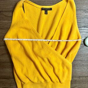 Banana Republic Wrap Front Ribbed Knit Tank Top Yellow Small Petite 100% Cotton