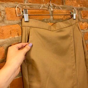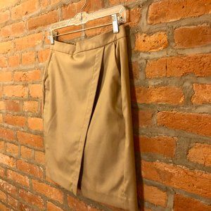 Banana Republic Mock Wrap Pencil Skirt. Attractive camel color. Wrap detail in front, pockets, back zipper, satin lined. 66% polyester/32% rayon/2% spandex. Never worn.
