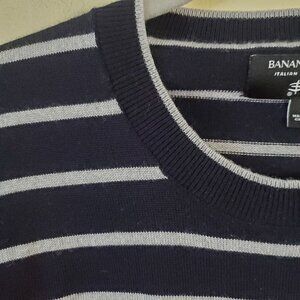 Banana Republic X Baruffa Italian Merino Wool Navy Gray Striped Sweater Size L