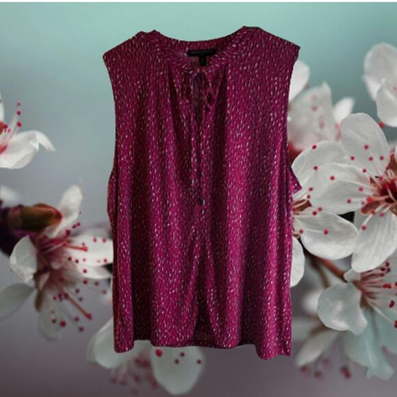 Banana Republic XL sleeveless pink tie neckline polyester blend stretch blouse. Gently used. No rips stains snags.